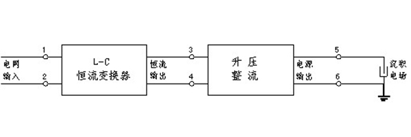 電網(wǎng)輸入的交流正弦電壓源,通過(guò)L-C恒流變換器,轉(zhuǎn)換為交流正弦電流源,經(jīng)升壓、整流后成為恒流高壓直流電源給沉積電場(chǎng)供電。